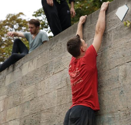 Leider wird es nicht so entspannt wie der Titel sagt. Dieses mal sucht ihr euch eine Stange, oder Mauer. An dieser werdet ihr euch nun in Armsprungposition, oder im Hang aufhalten.