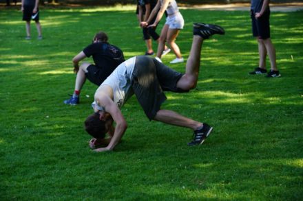 Deshalb übst du heute das Abrollen. Erfahrene Traceure können die Rolle auch gerne über oder auf Hindernissen üben.